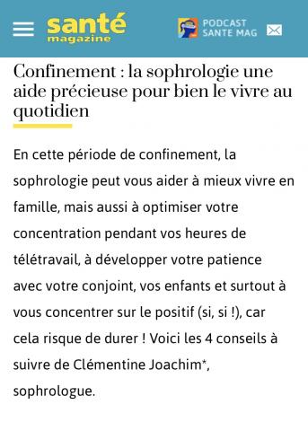 Besoin de patience, de concentration et de positif pour mieux vivre ce confinement? Venez lire mes 4 astuces de sophrologie, publiées sur le site de Santé Magazine.